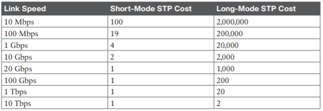 | Root Path Cost 2) | - Root Bridge로 향하는 경로의 값 - 인터페이스의 속도에 따라 정해진 값이 있으며 해당 값은 누적 됨 |